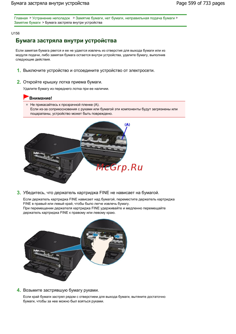 Page 599 of 733 pagesБумага застряла внутри устройства