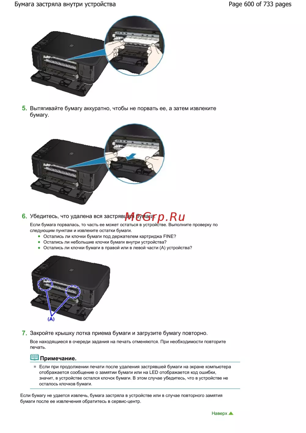 Page 600 of 733 pagesБумага застряла внутри устройства