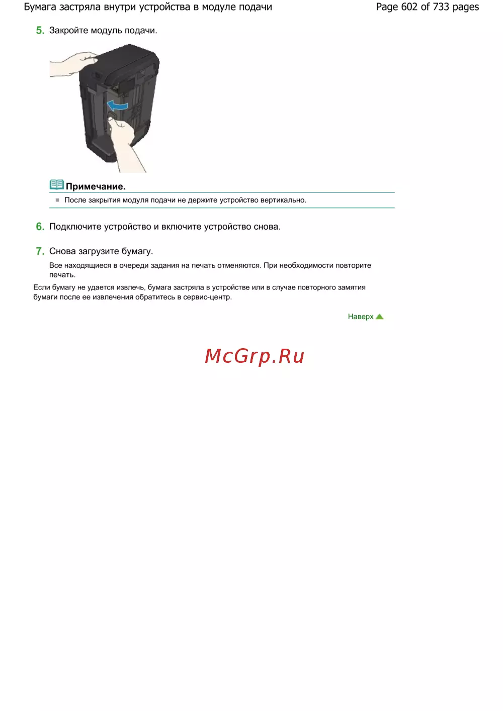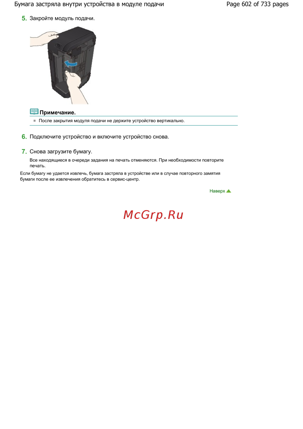 Page 602 of 733 pagesБумага застряла внутри устройства в модуле подачи