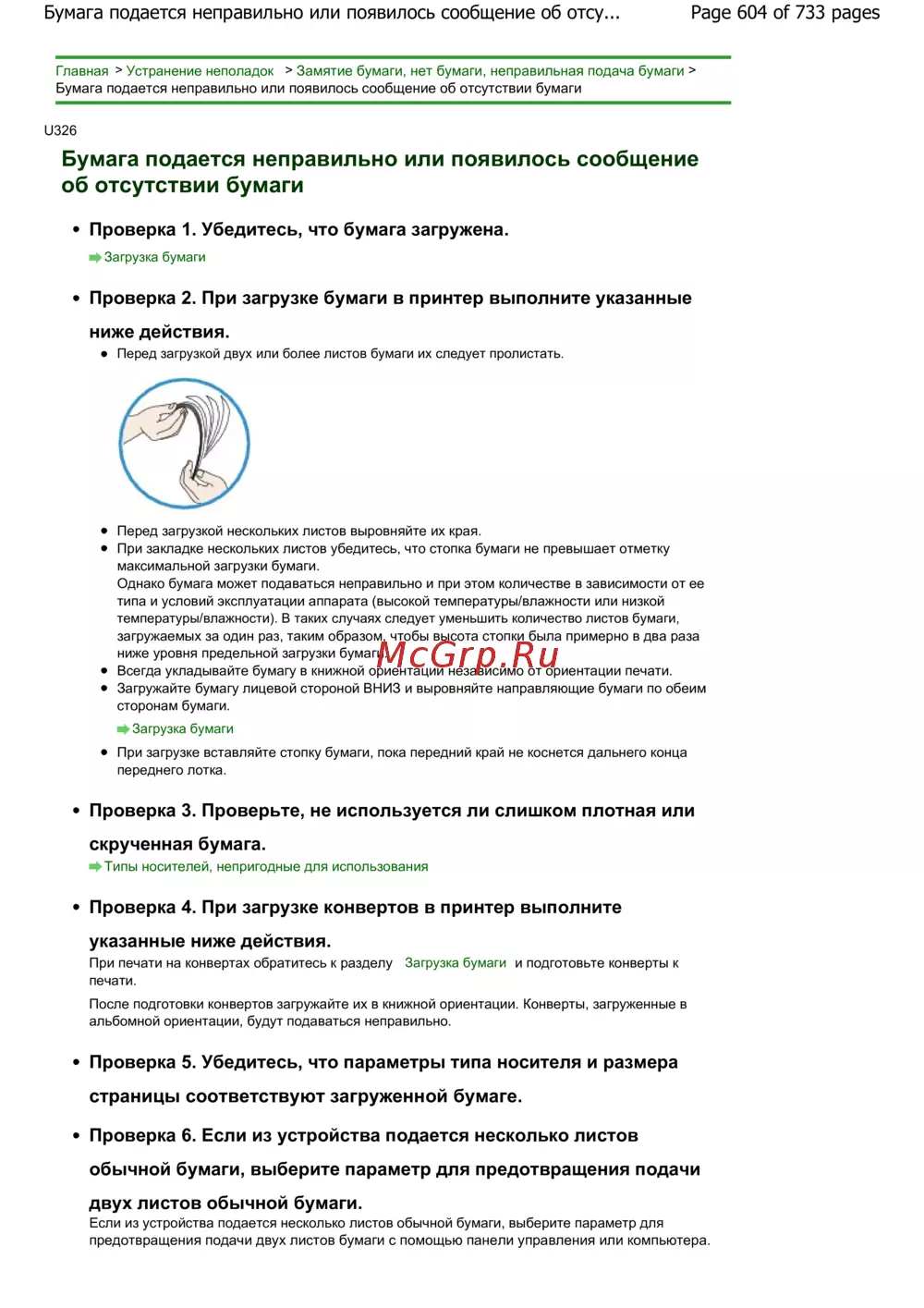 Page 604 of 733 pagesБумага подается неправильно или появилось сообщение об отсу...