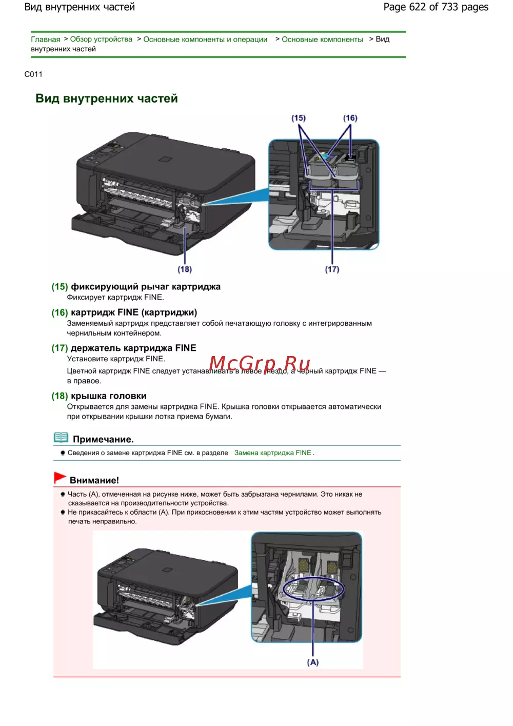Canon Pixma MG2140 — обзор основных компонентов устройства печати и их функции [622/733]