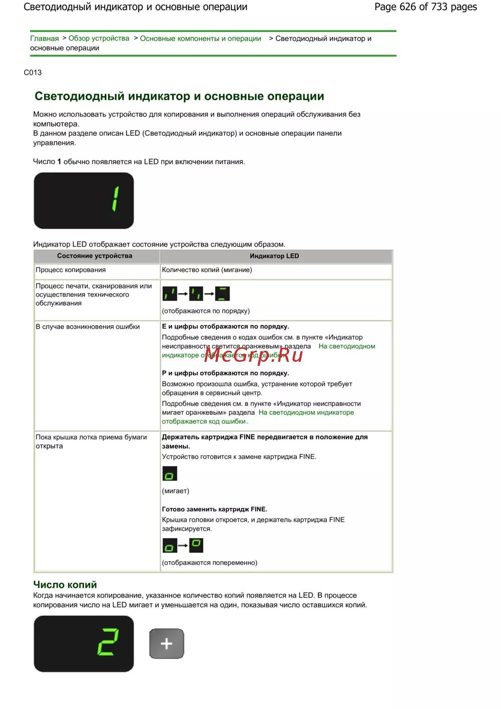 Canon Pixma MG2140 — светодиодный индикатор и операции устройства: руководство и описание состояний [626/733]