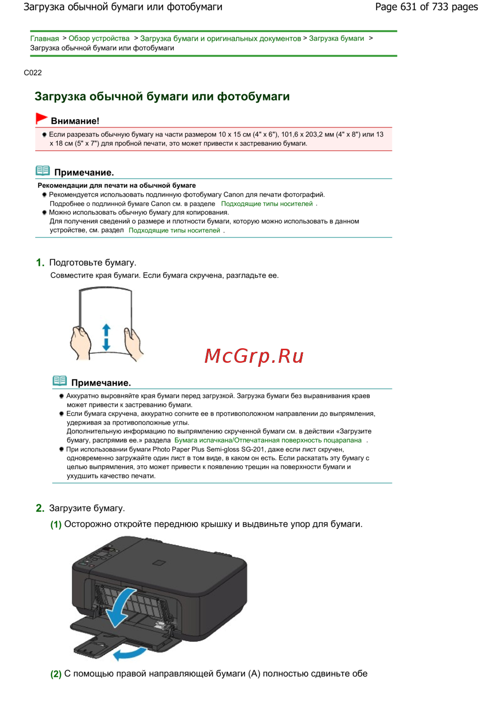 Canon Pixma MG2140 — как правильно загружать бумагу и фотобумагу в устройство [631/733]