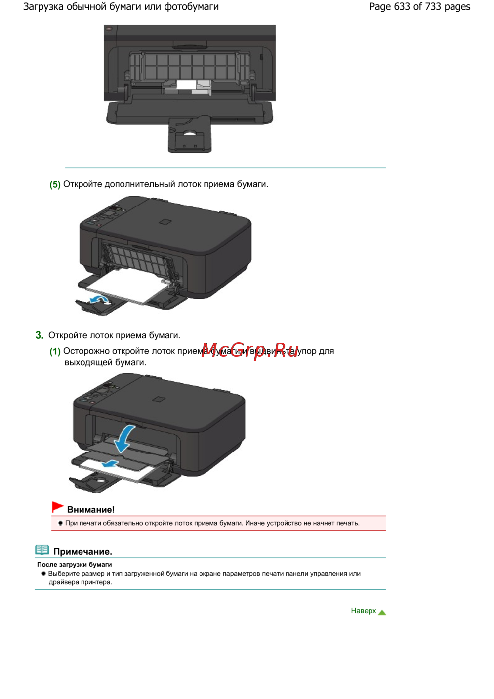 При печати обязательно откройте лоток приема бумаги. Иначе устройство не начнет печать.