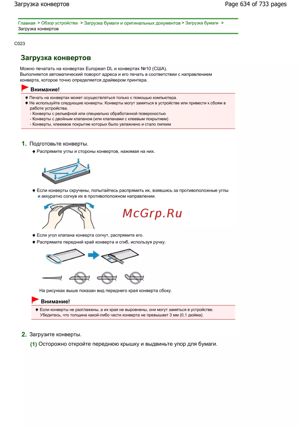 Canon Pixma MG2140 — как правильно загружать конверты для печати [634/733]