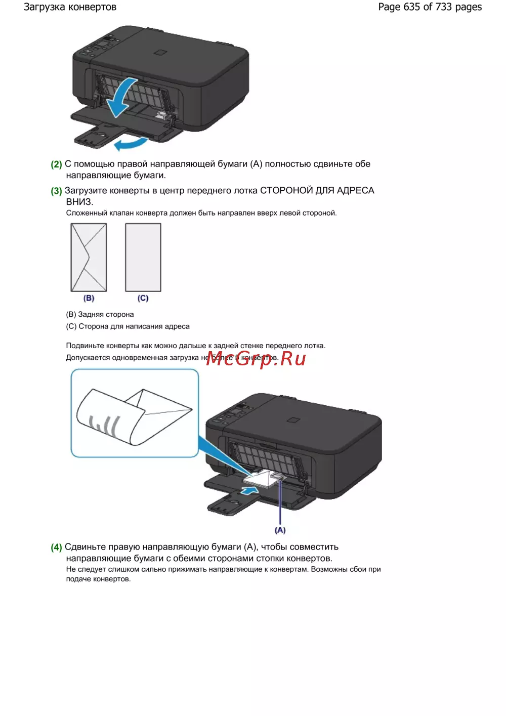 Canon Pixma MG2140 — как правильно загружать конверты в лоток принтера [635/733]