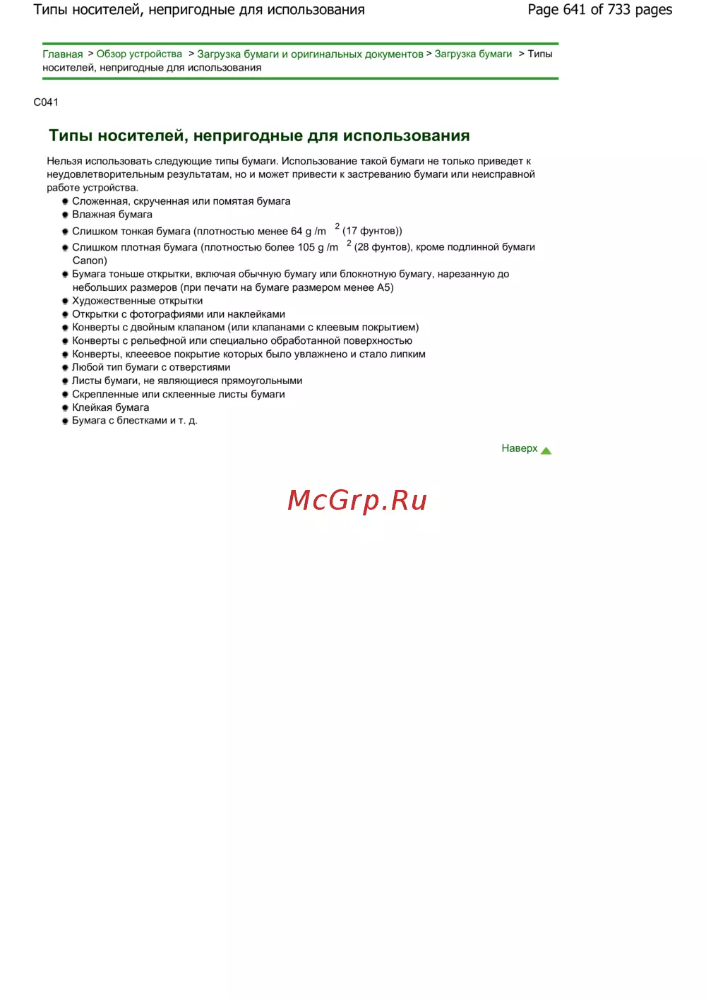 Canon Pixma MG2140 — типы бумаги, которые нельзя использовать в устройстве [641/733]