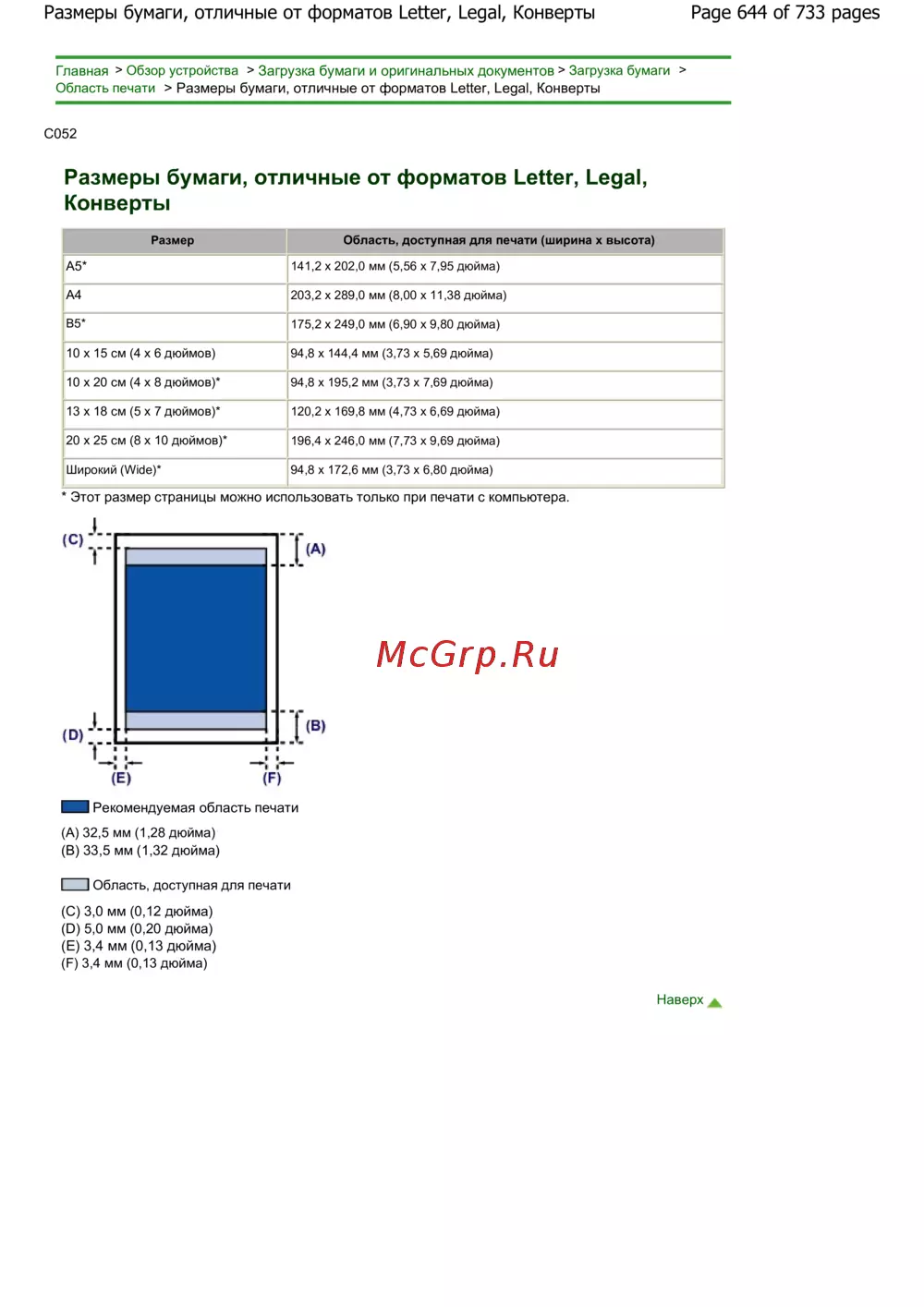 Page 644 of 733 pagesРазмеры бумаги, отличные от форматов Letter, Legal, Конверты