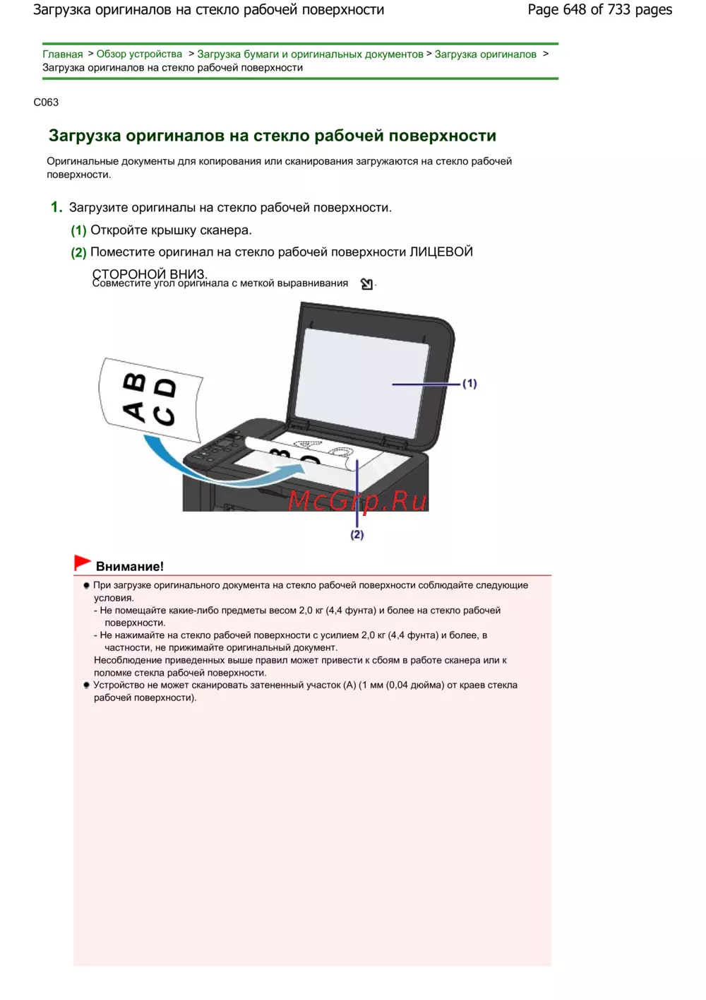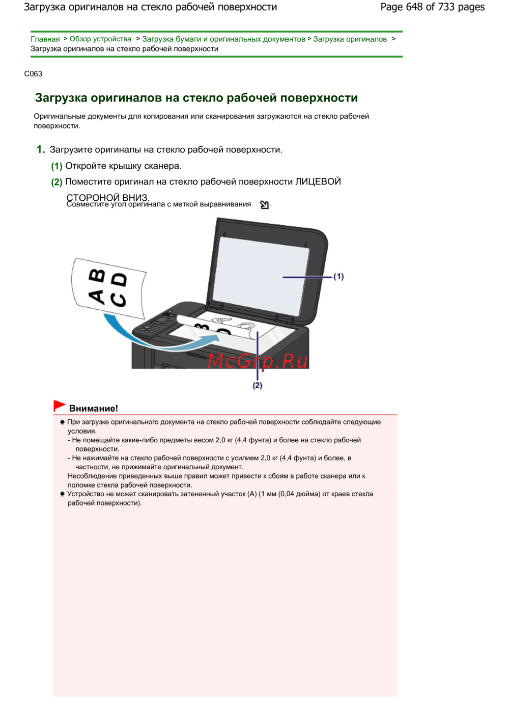 Page 648 of 733 pagesЗагрузка оригиналов на стекло рабочей поверхности