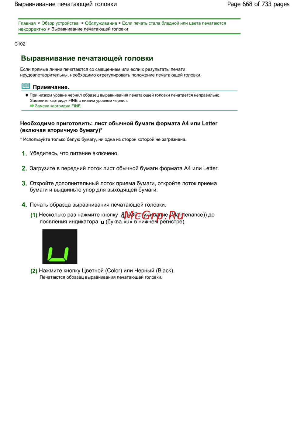 Canon Pixma MG2140 — как выровнять печатающую головку для качественной печати [668/733]
