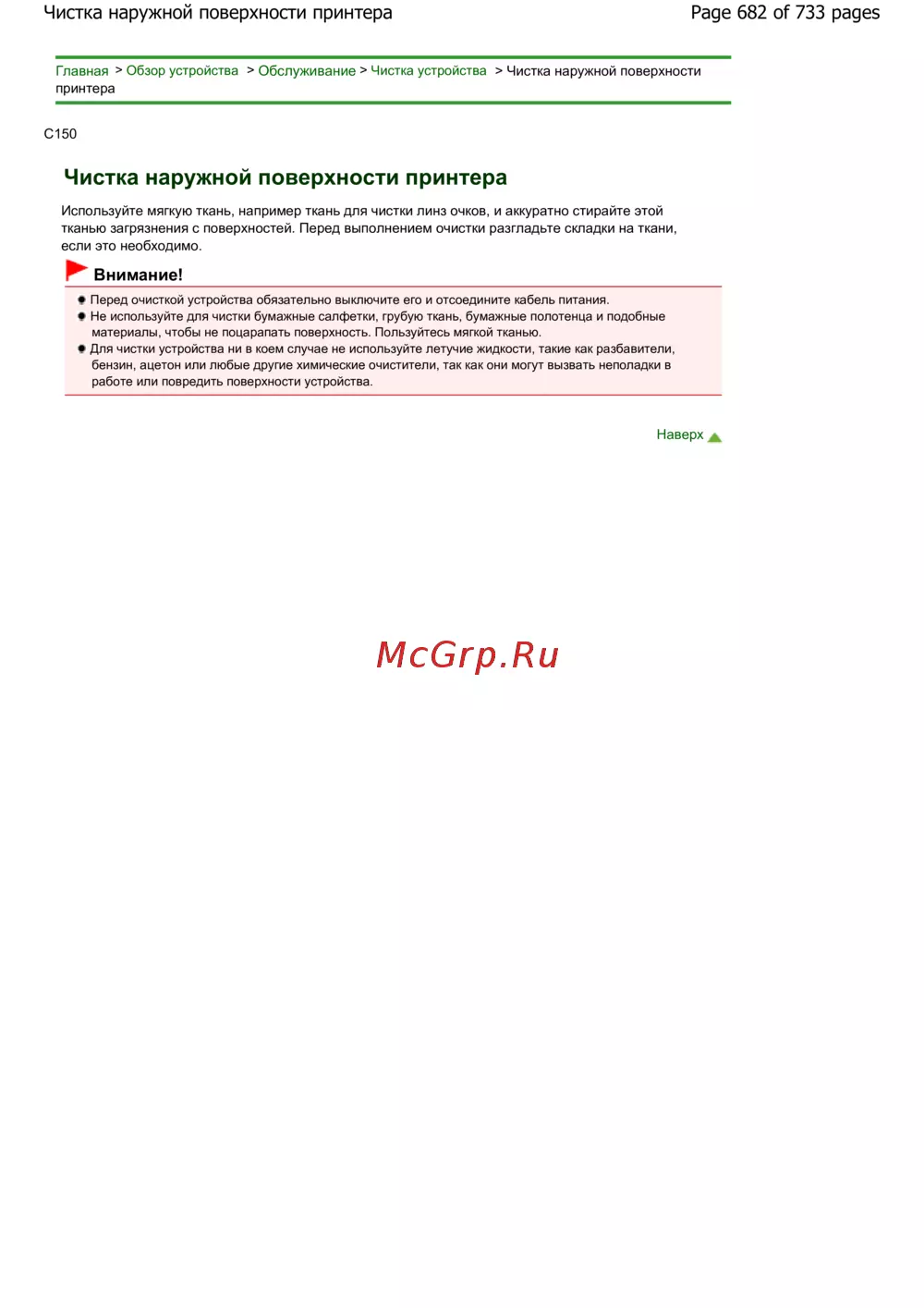 Canon Pixma MG2140 — рекомендации по чистке наружной поверхности принтера [682/733]