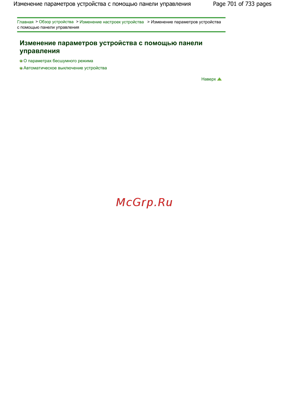 Page 701 of 733 pagesИзменение параметров устройства с помощью панели управления