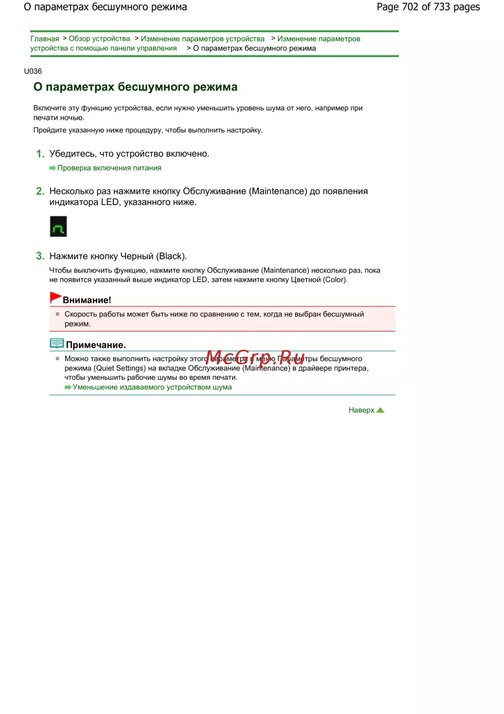 Canon Pixma MG2140 — настройка бесшумного режима устройства для комфортной работы [702/733]