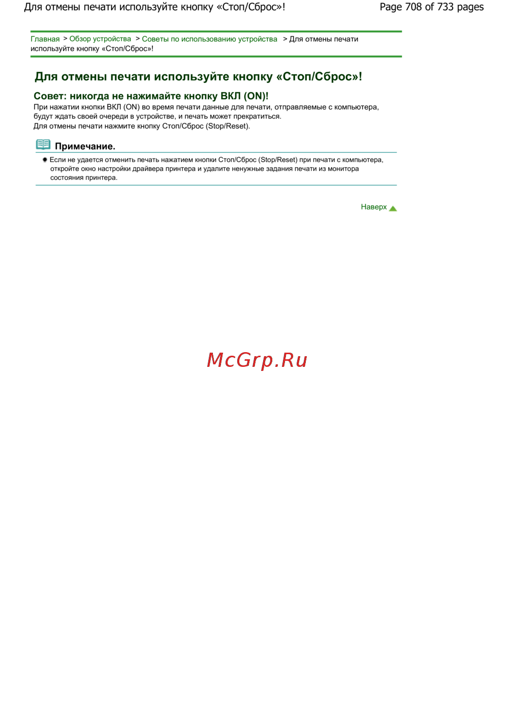 Canon Pixma MG2140 — советы по отмене печати и управлению устройством [708/733]