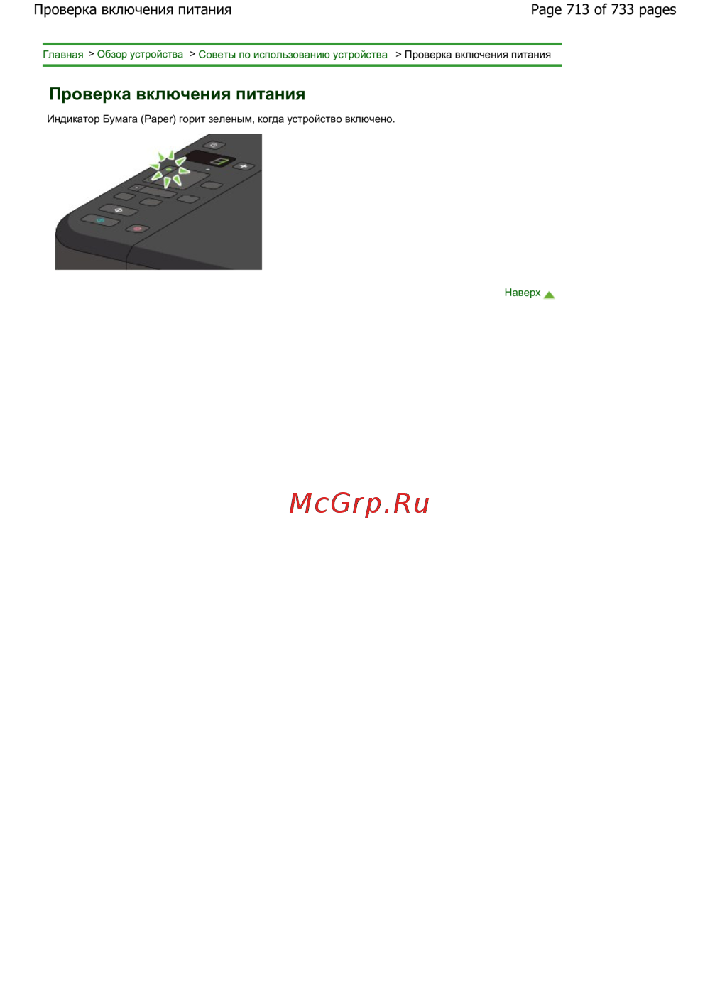 Советы по использованию устройства > Проверка включения питания