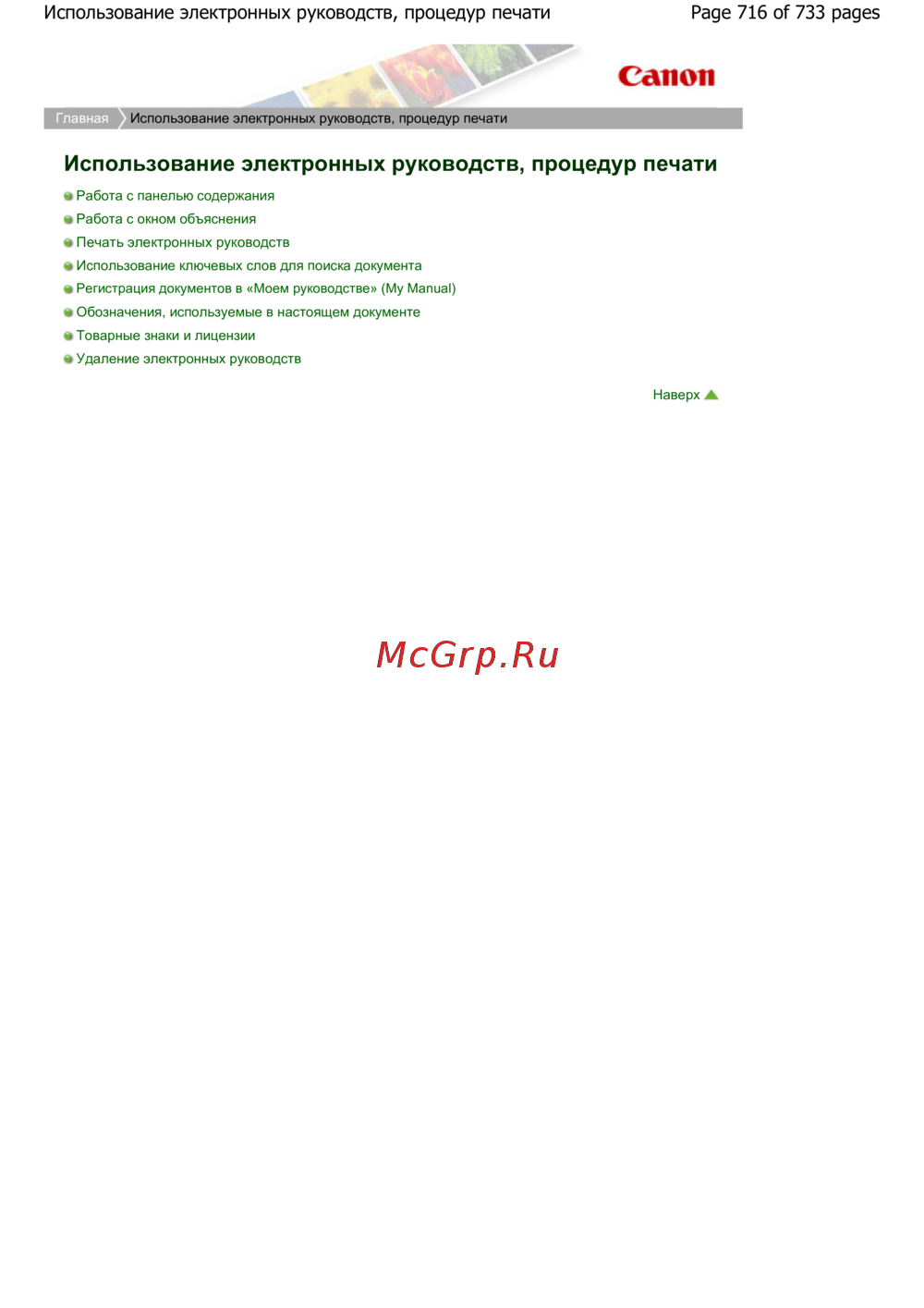 Page 716 of 733 pagesИспользование электронных руководств, процедур печати