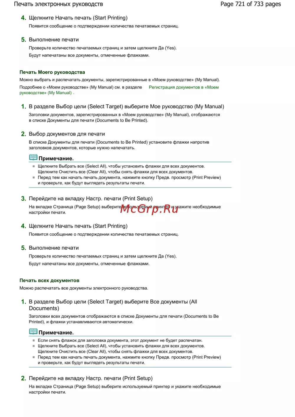 Canon Pixma MG2140 — как начать печать документов из электронного руководства [721/733]