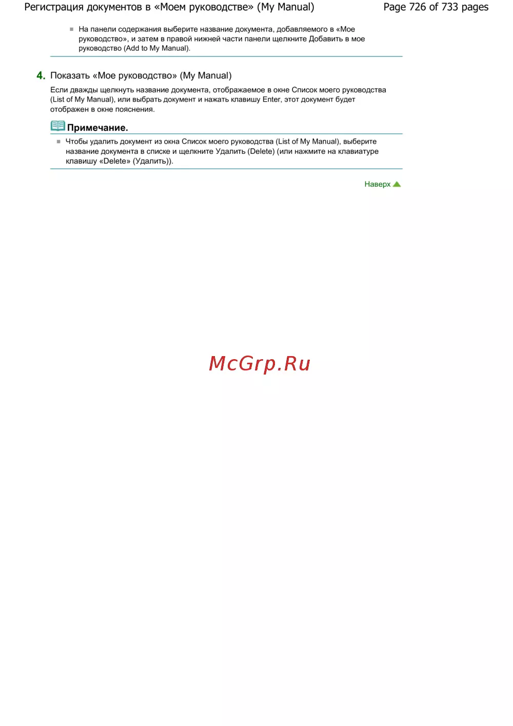 Page 726 of 733 pagesРегистрация документов в «Моем руководстве» (My Manual)