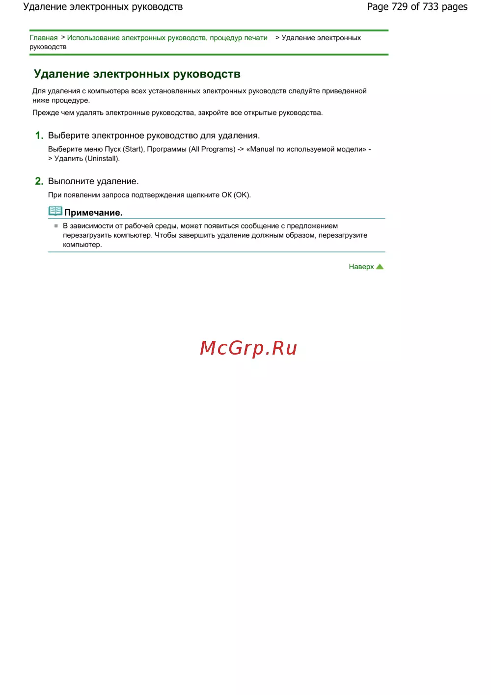 - Page 729 of 733 pages удаление электронных руководств p.729