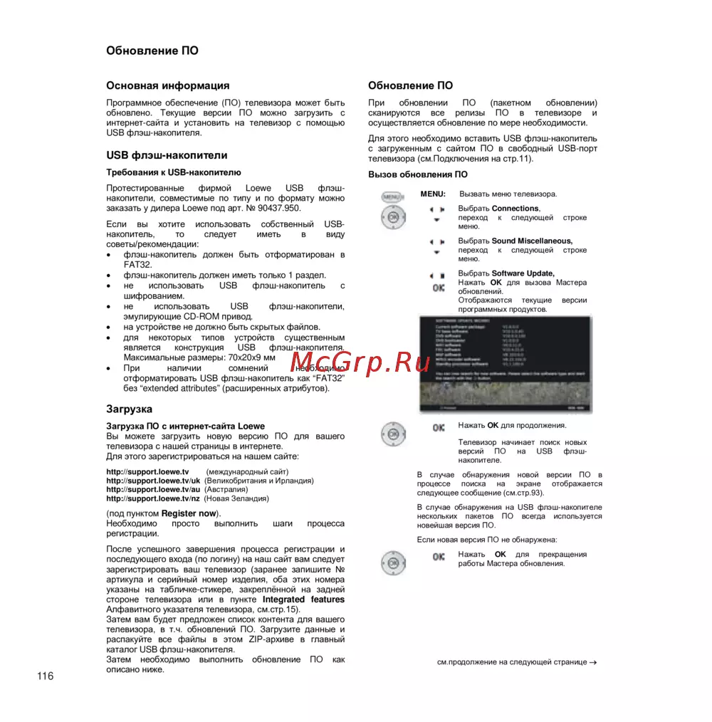 телевизора, в т.ч. обновлений ПО. Загрузите данные и