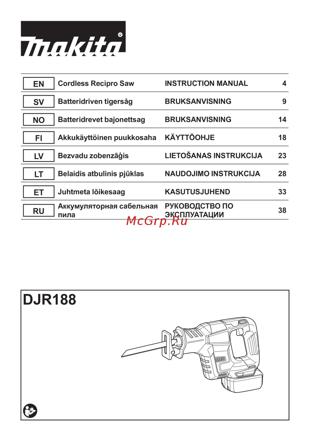Makita DJR188Z без акк. и ЗУ Инструкция по эксплуатации онлайн
