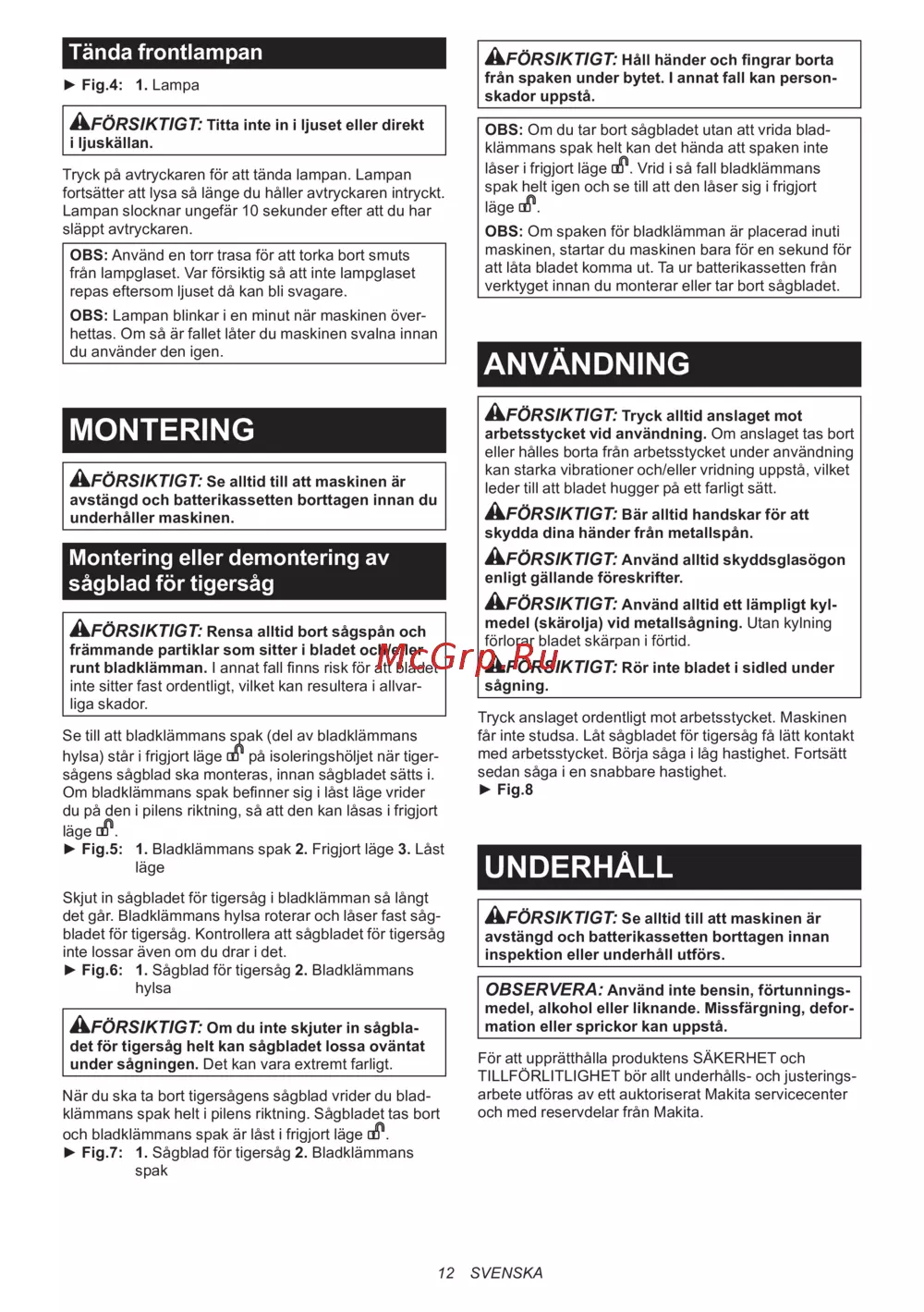 ![Makita DJR188Z без акк. и ЗУ [12/44] Underhåll](/views2/1633570/page12/bgc.png)