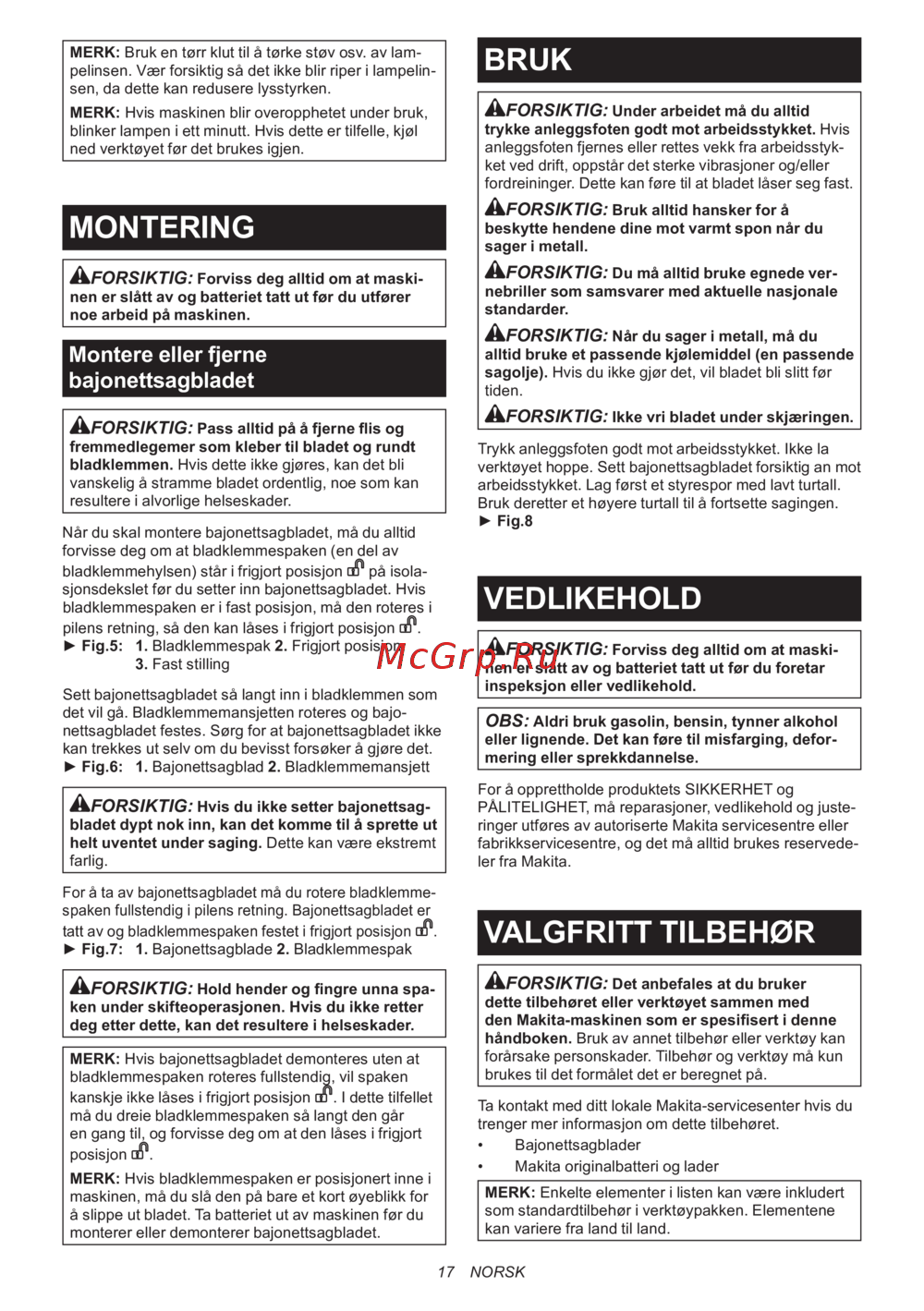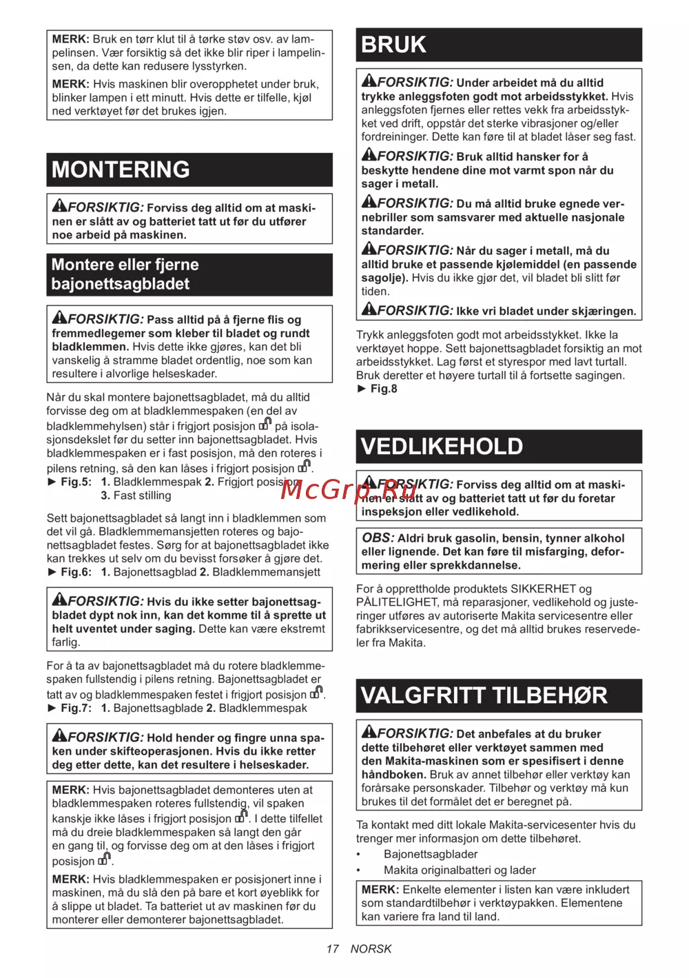 MERK:Hvisbajonettsagbladetdemonteresutenat