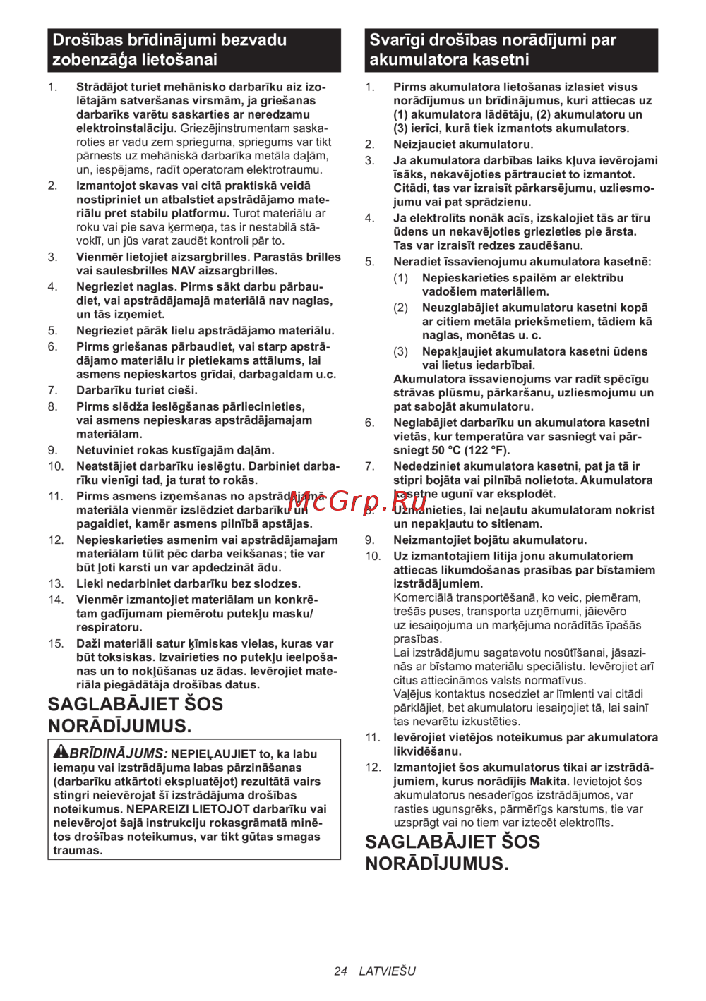 ![Makita DJR188Z без акк. и ЗУ [24/44] Saglabājiet šos norādījumus](/views2/1633570/page24/bg18.png)