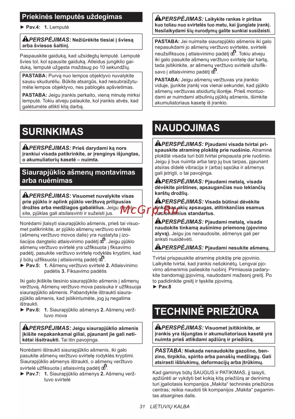 ![Makita DJR188Z без акк. и ЗУ [31/44] Perspėjimas](/views2/1633570/page31/bg1f.png)