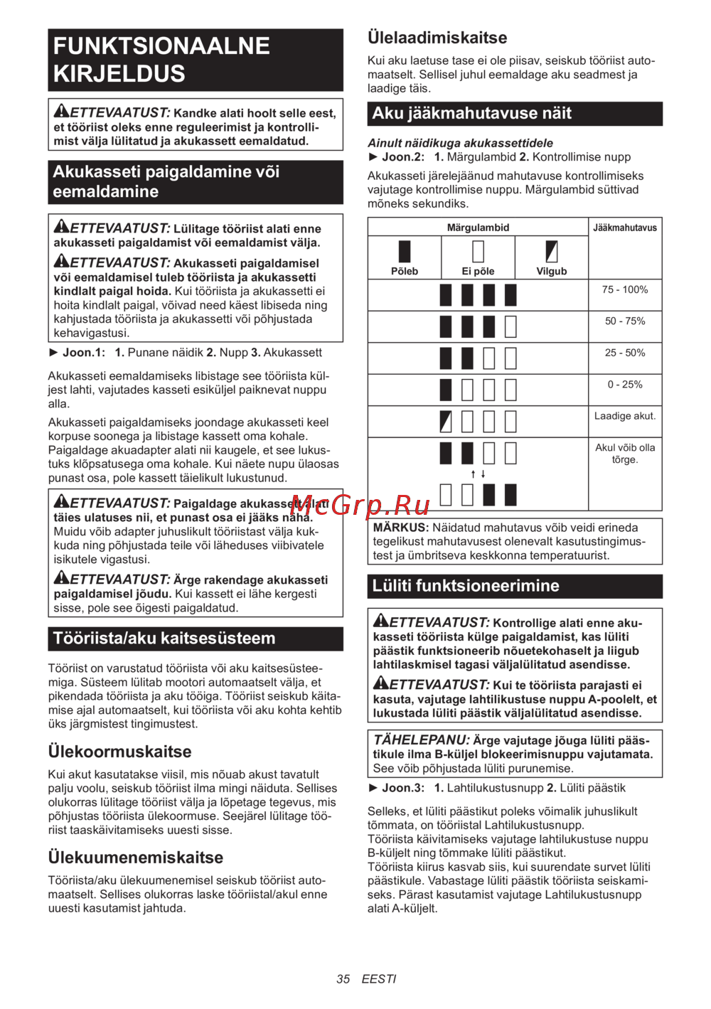 ![Makita DJR188Z без акк. и ЗУ [35/44] Ettevaatust](/views2/1633570/page35/bg23.png)