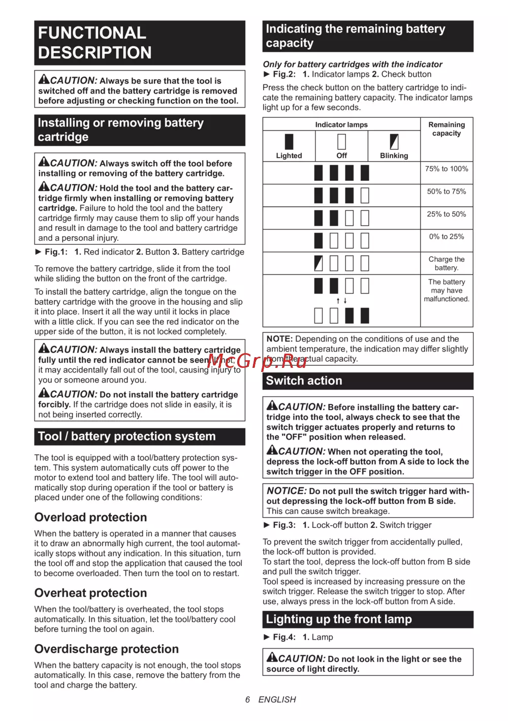 - Важные правила техники безопасности для работы с аккумуляторным блоком p.39