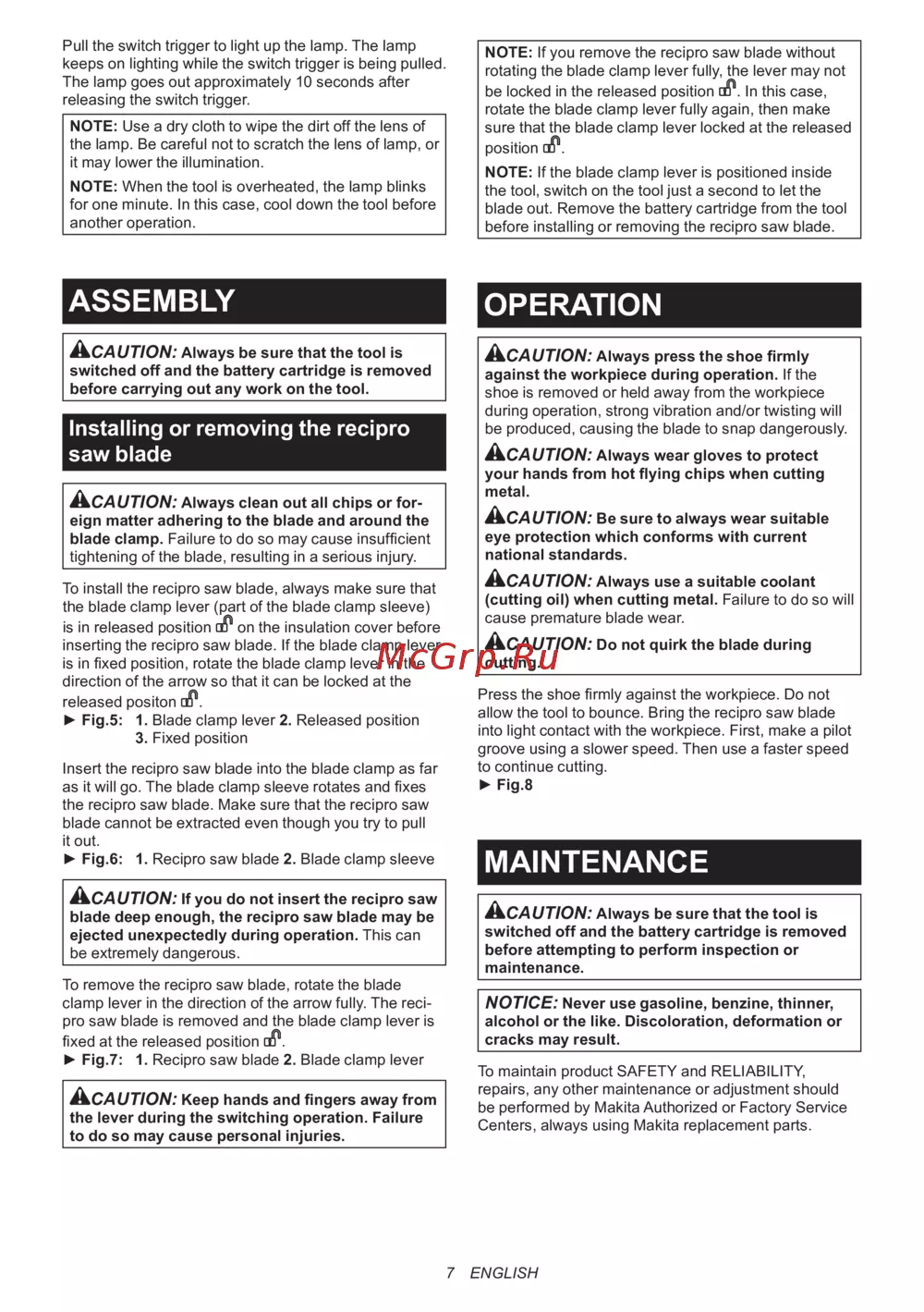![Makita DJR188Z без акк. и ЗУ [7/44] Operation](/views2/1633570/page7/bg7.png)