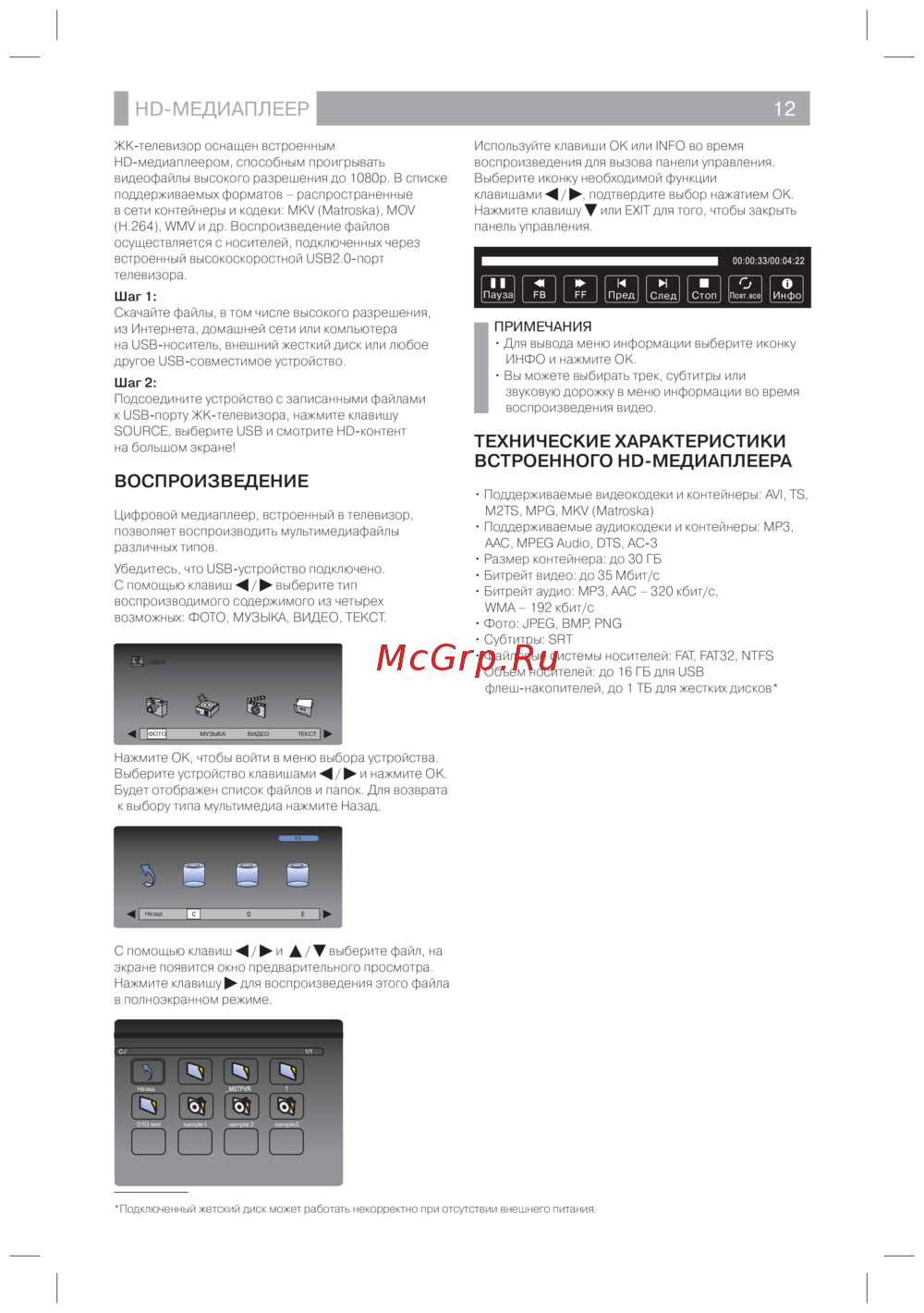 BBK LED2455FDT [14/30] Технические характеристики встроенного hd медиаплеера