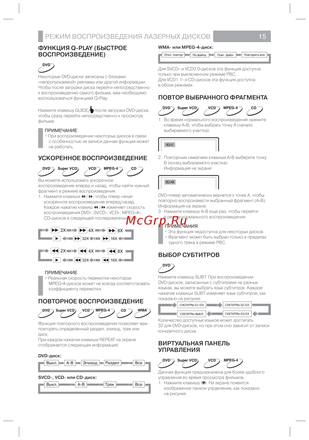 Для SVCD- и VCD2.0-дисков эта функция доступна