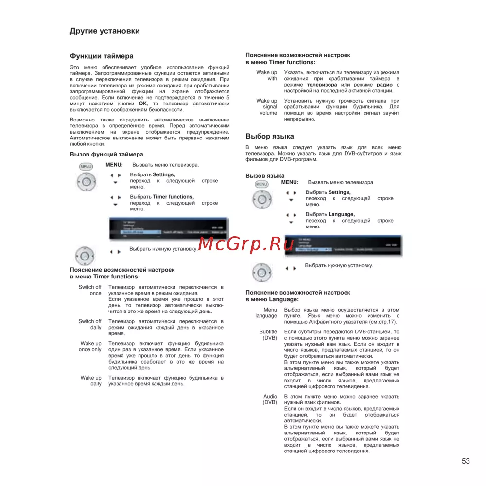телевизора. Можно указать язык для DVB-субтитров и язык