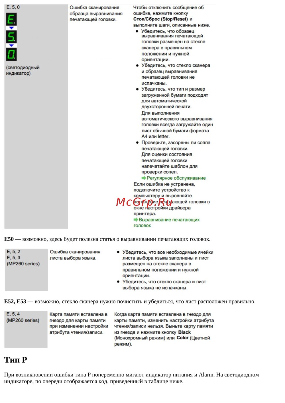Е52, Е53 — возможно, стекло сканера нужно почистить и убедиться, что лист расположен правильно.