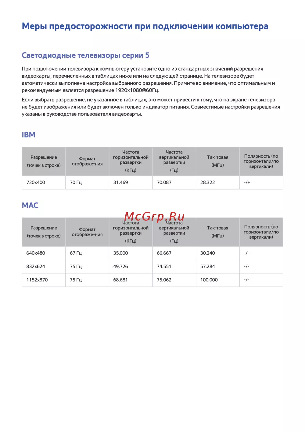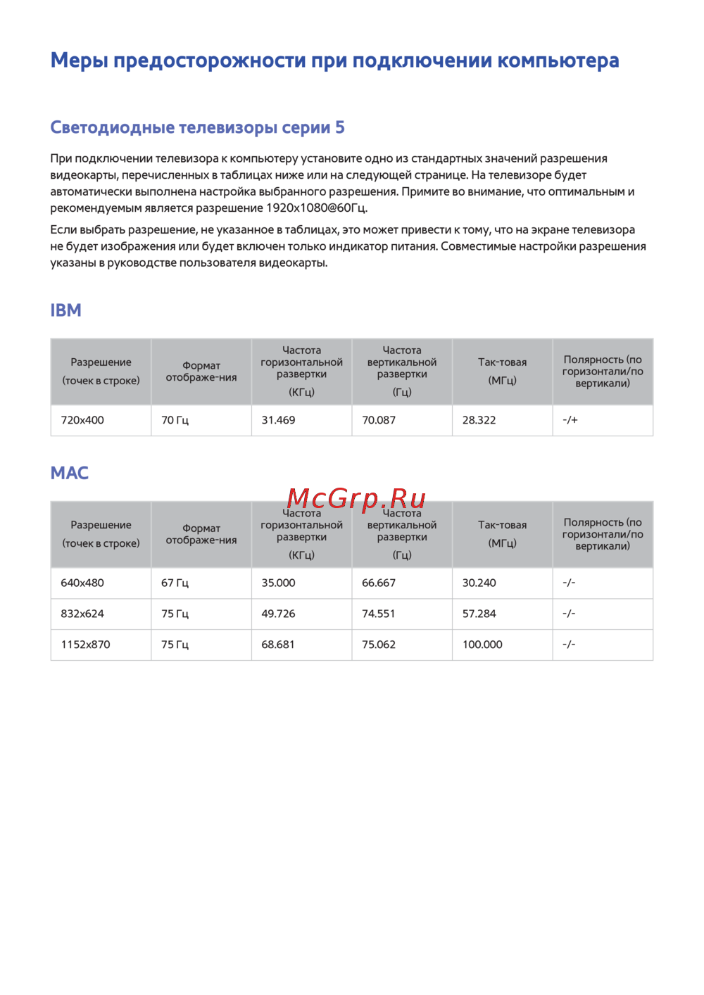 - Если выбрать разрешение не указанное в таблицах это может привести к тому что на экране телевизора не будет изображения или будет включен только индикатор питания совместимые настройки разрешения указаны в руководстве пользователя видеокарты p.140