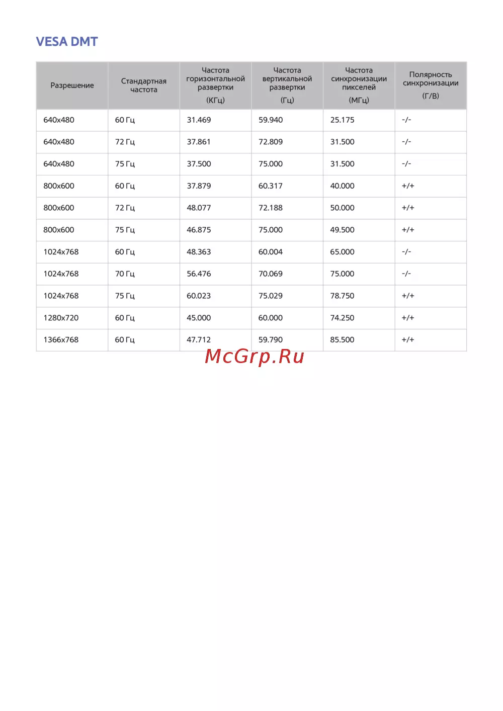 - После подключения компьютера к телевизору установите на компьютере разрешение экрана телевизора оптимальное разрешение 1366x768 60гц если установить значение не совпадающее со значением указанным в нижеследующей таблице изображение на экране телевизора может не отображаться установите разрешение надлежащим образом согласно указаниям в руководстве пользователя к компьютеру или видеокарте p.142
