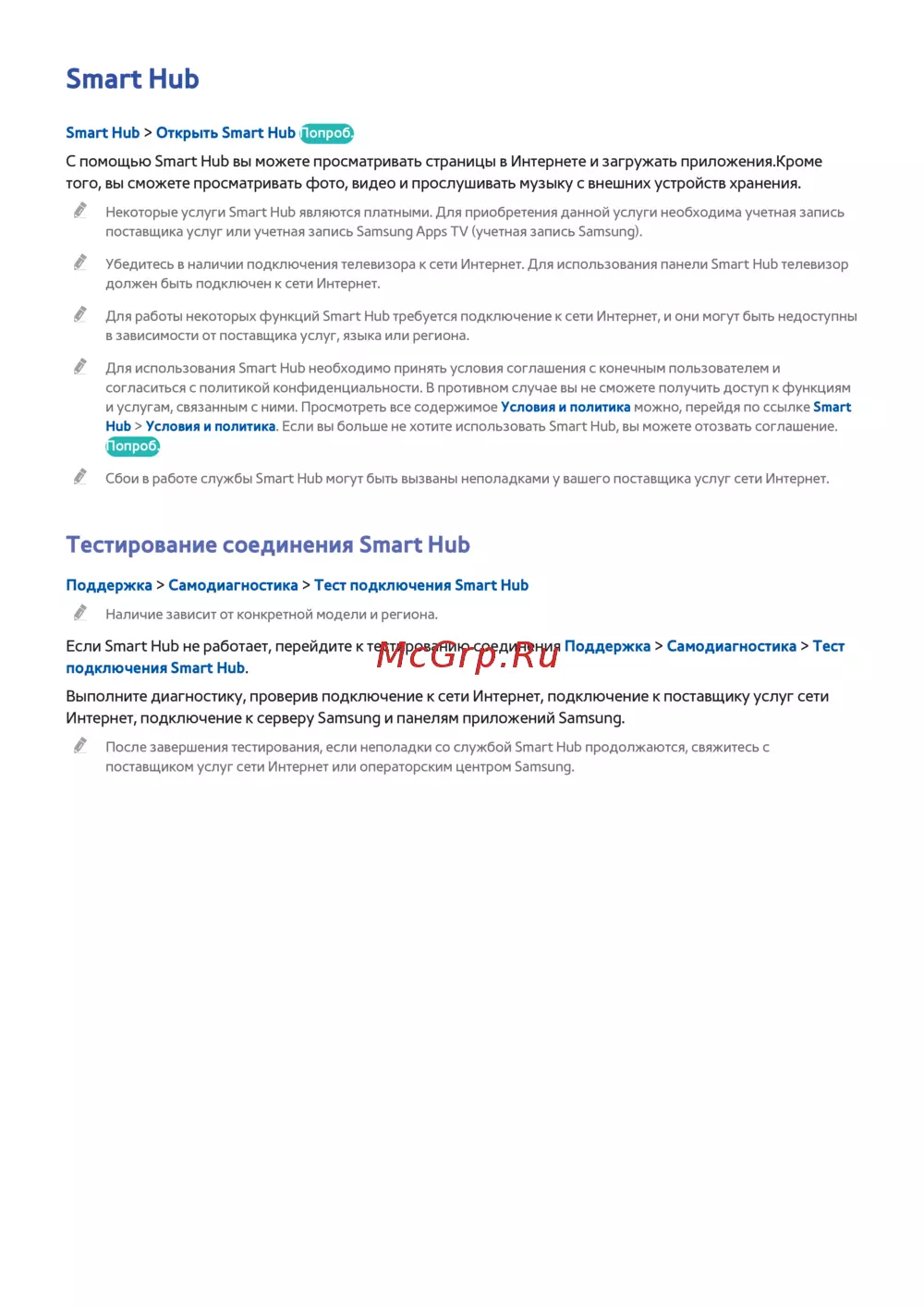 Для работы некоторых функций Smart Hub требуется подключение к сети Интернет, и они могут быть недоступны