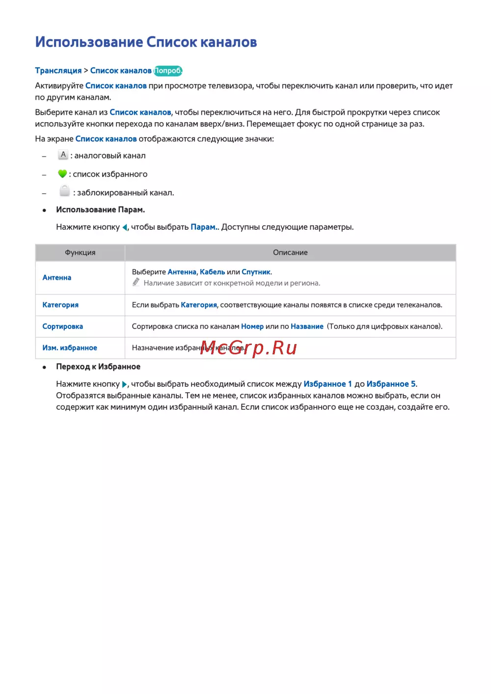 Узнайте, как активировать и использовать список каналов для переключения между ними. Настройте избранные каналы и воспользуйтесь функциями сортировки.