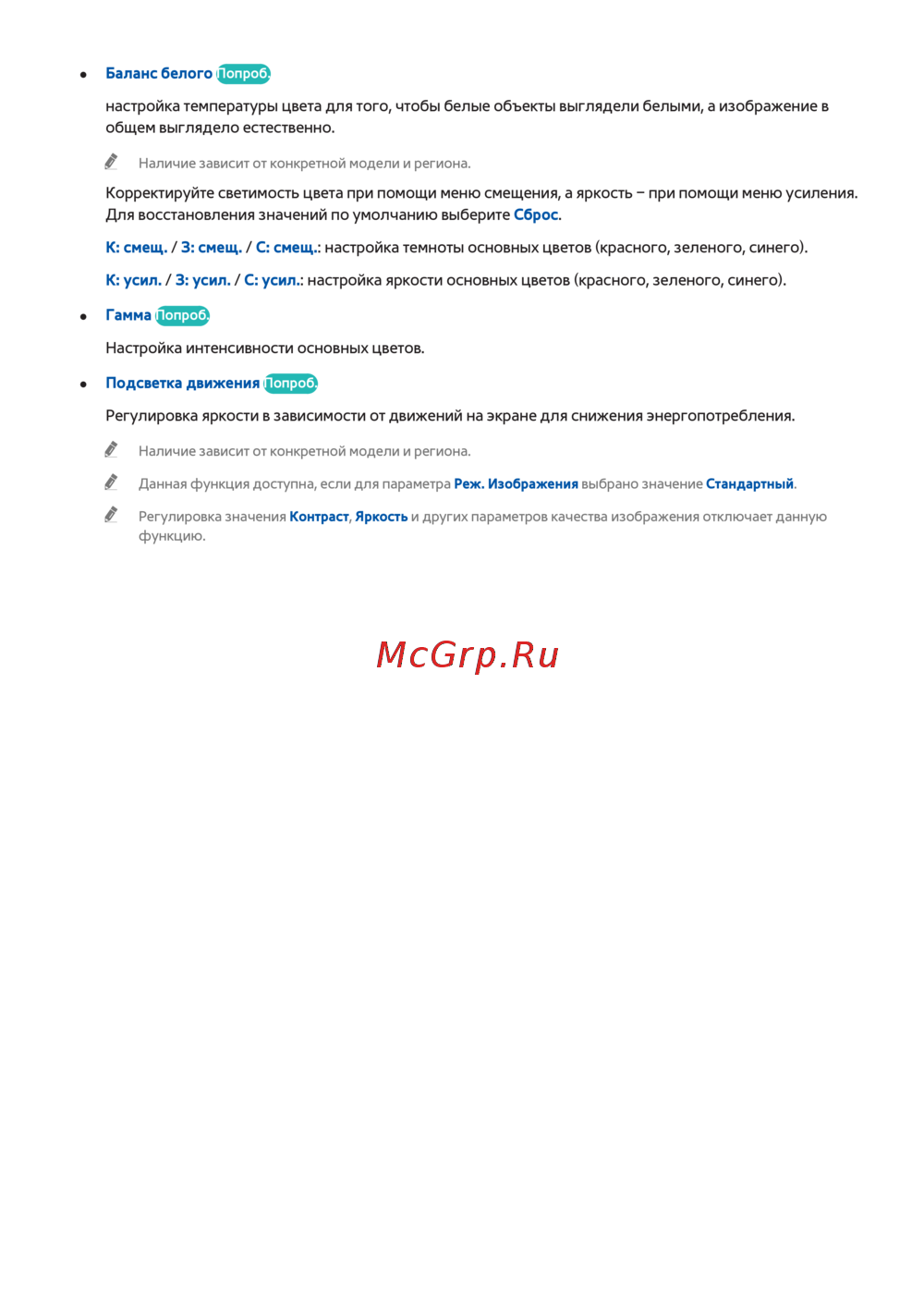 Регулировка значения Контраст, Яркость и других параметров качества изображения отключает данную