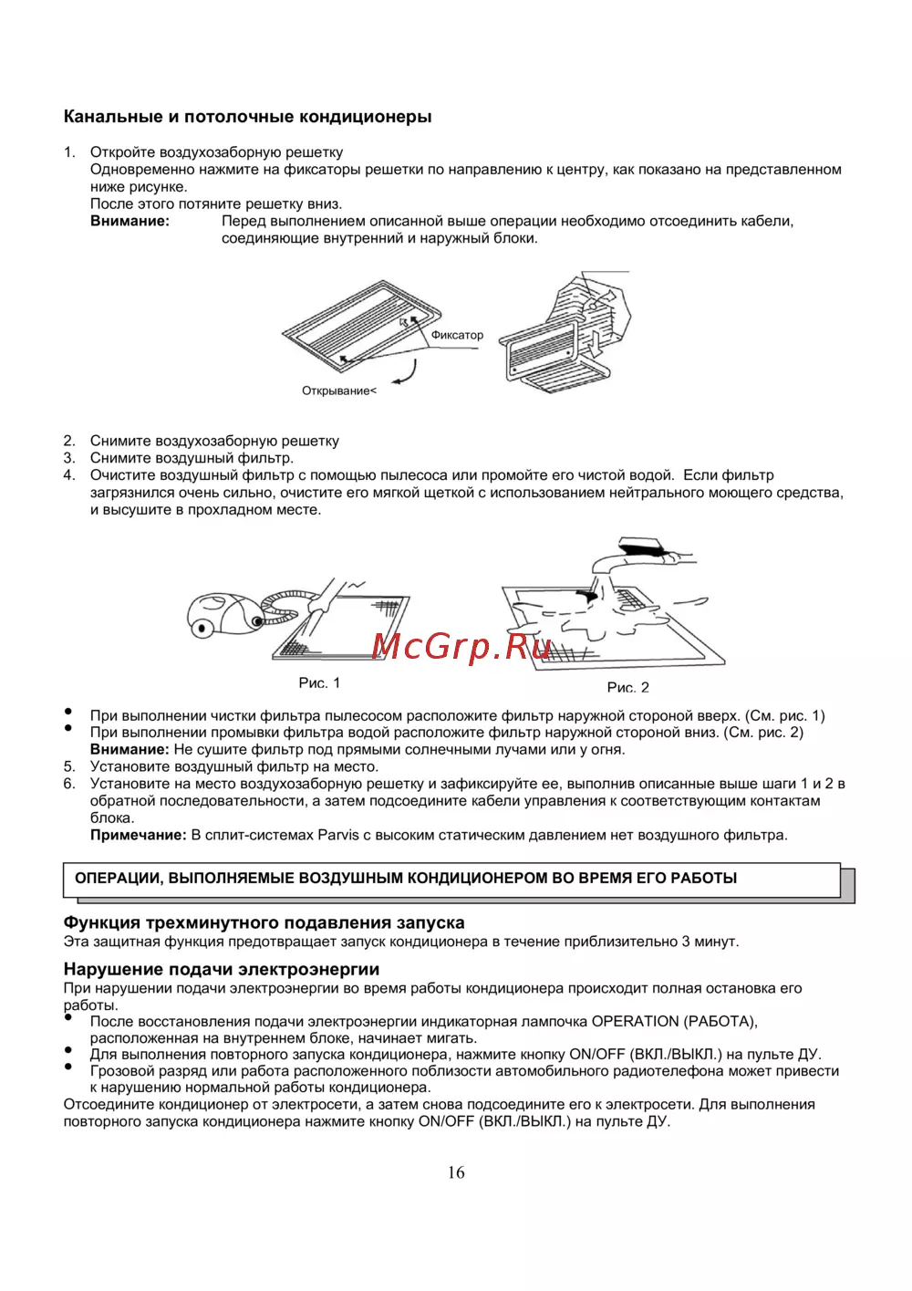 Примечание: В сплит-системах Parvis с высоким статическим давлением нет воздушного фильтра.