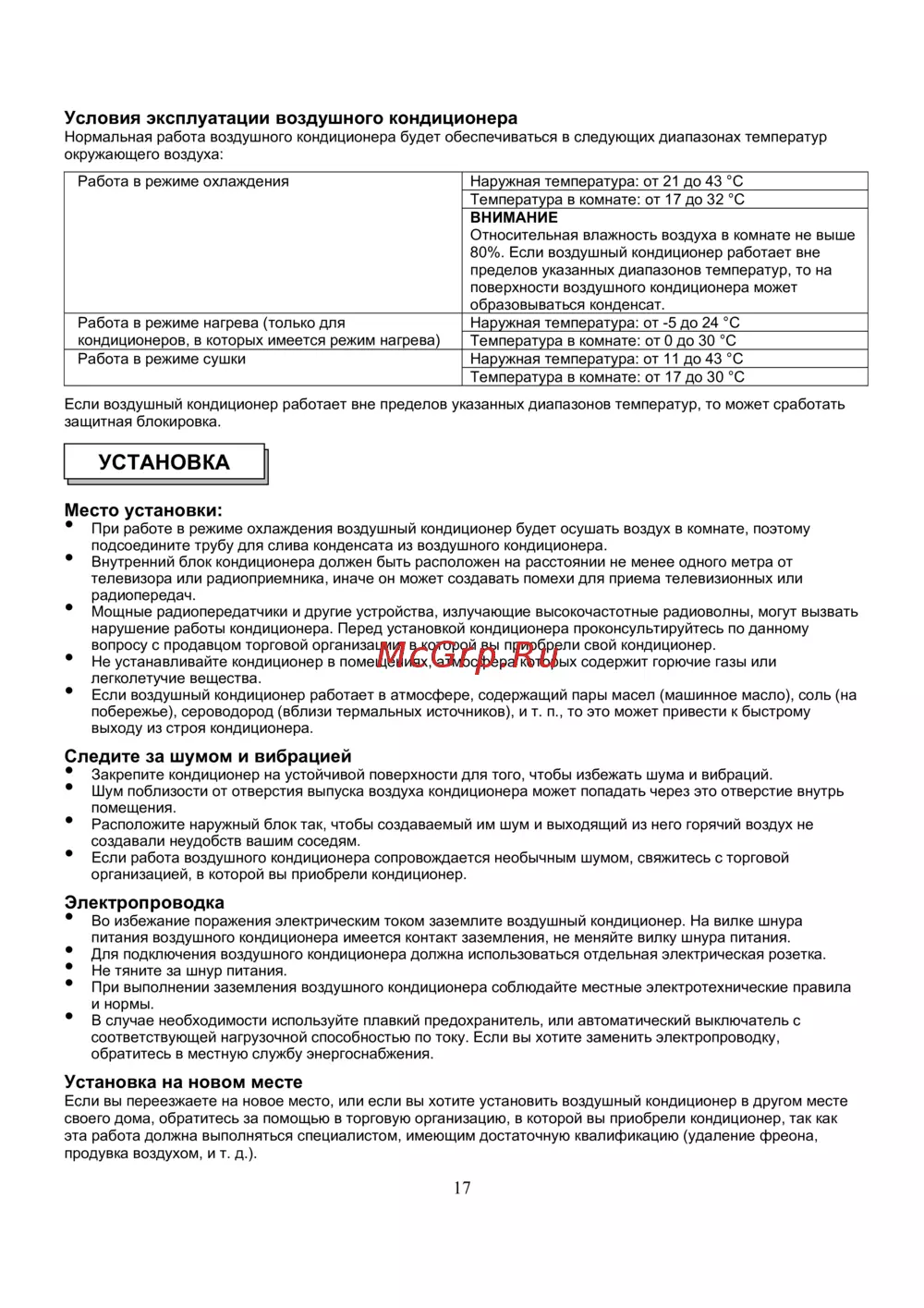 General Climate GC/GU-CF30HR-07 — условия эксплуатации и установка воздушного кондиционера [18/20]