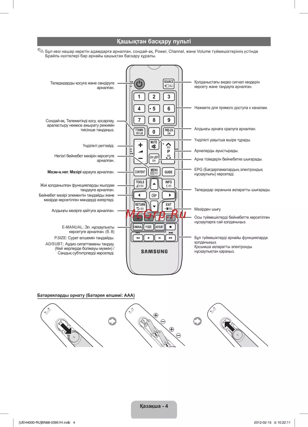 Samsung UE32 EH4000W — арнайы қашықтан басқару пульті көзі нашар көретіндерге [40/49]