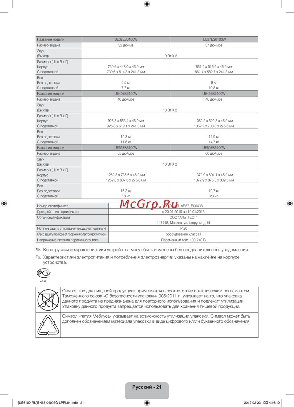 - Символ петля мебиуса указывает на возможность утилизации упаковки символ может быть дополнен обозначением материала упаковки в виде цифрового и или буквенного обозначения p.21