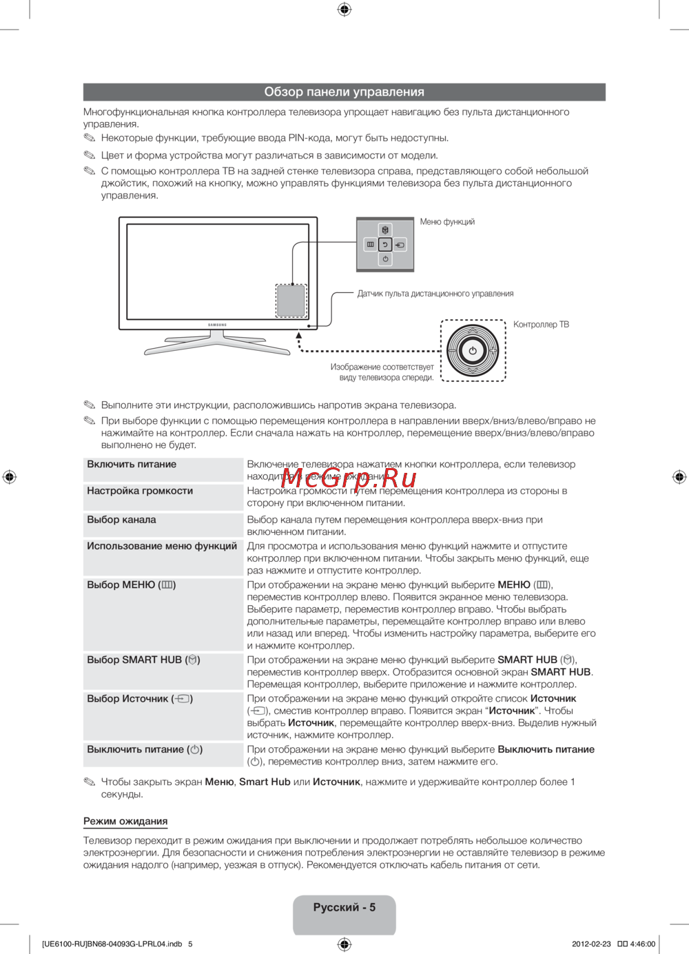 ![Samsung UE40 ES6100W [5/23] Обзор панели управления](/views2/1065357/page5/bg5.png)