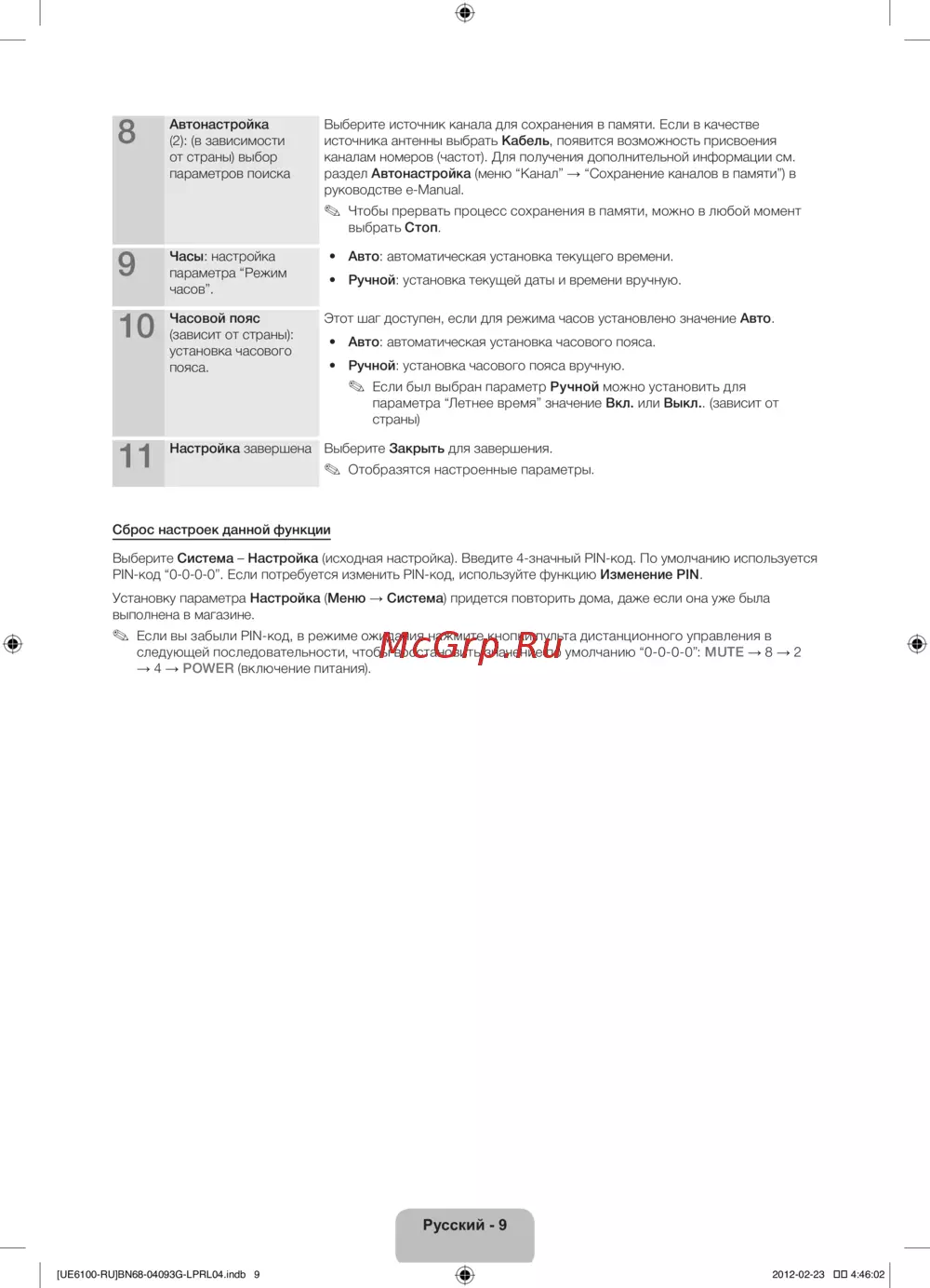 Samsung UE40 ES6100W — настройка параметров поиска и времени на устройстве [9/23]