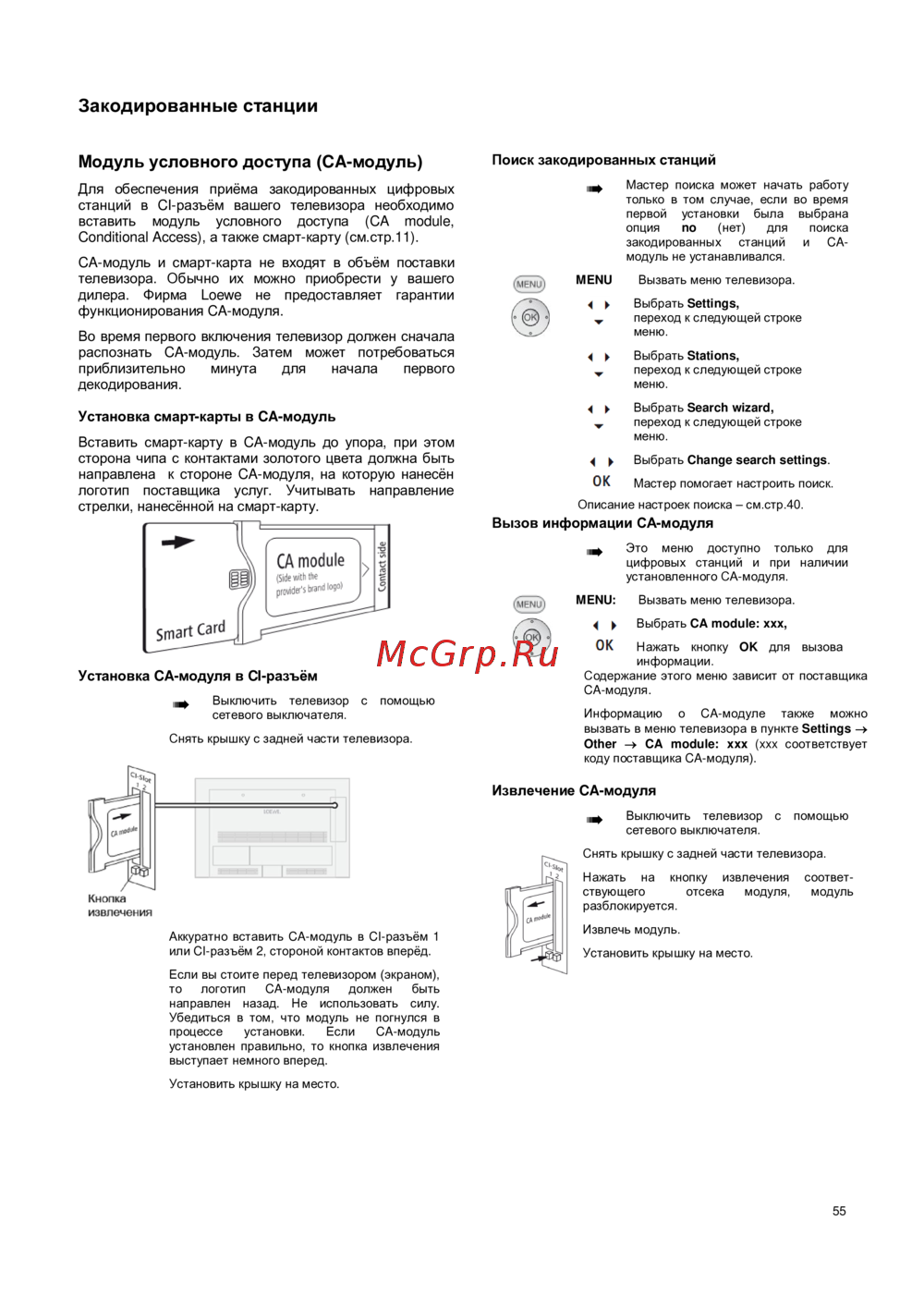 Loewe Connect 51409U82 White [55/119] Установка ca модуля в ci разъём