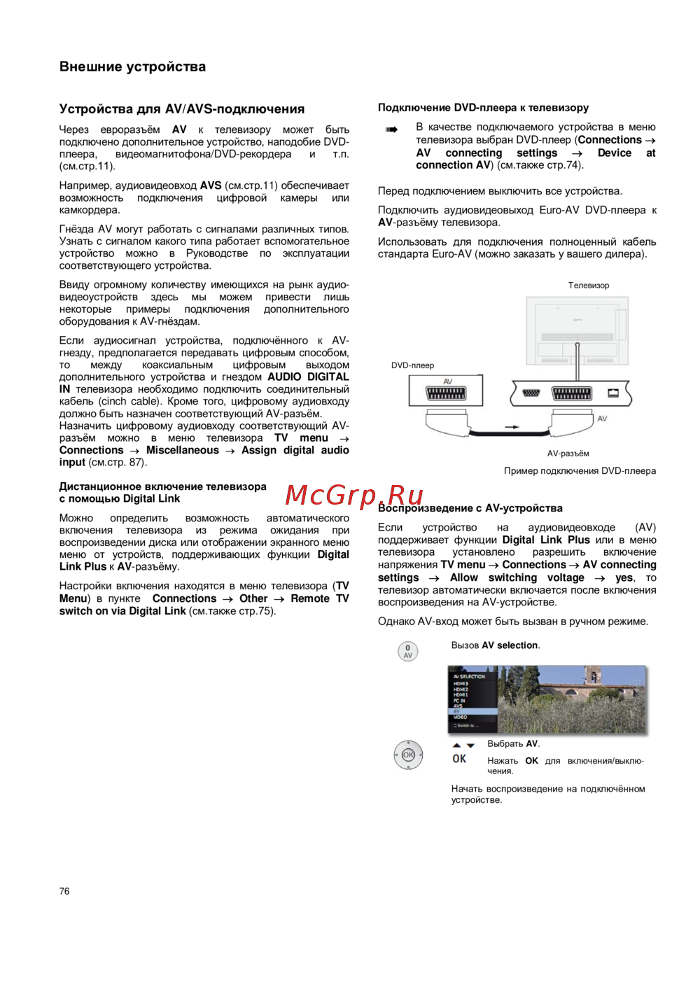 connection AV) (см.также стр.74).