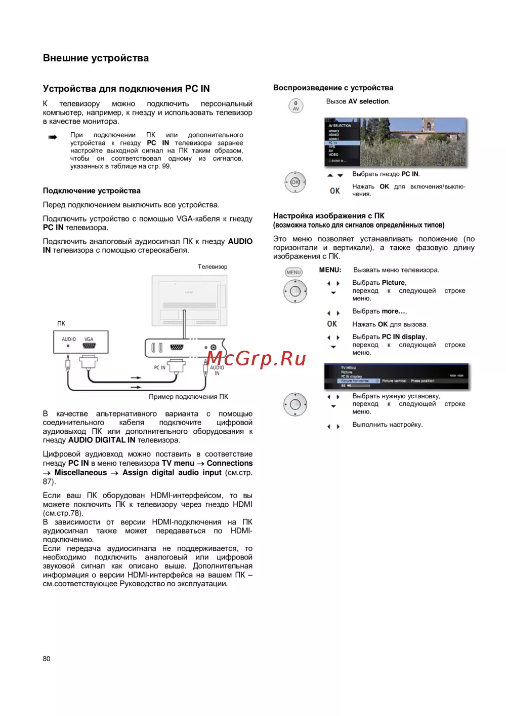 - Электрические характеристики сигналы поступающие по pc in hdmi p.99